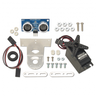 Output from the PING))) sensor is a variable-width pulse that corresponds to the distance to the target. When coupled with the Mounting Bracket kit, the PING))) sensor can make a 180° sweep of its environment and determine its course. Together they're great for autonomous navigation.